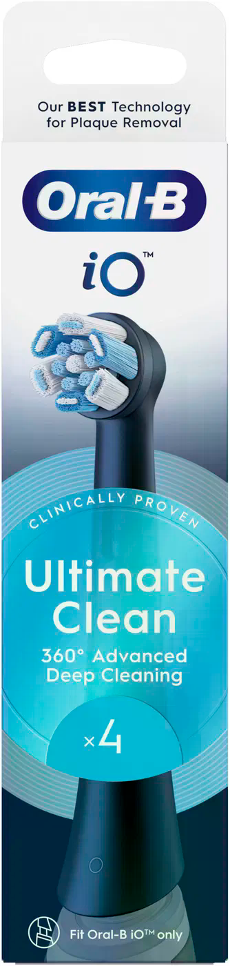 Náhradné hlavice Oral-B iO Ultimate Clean sú vhodné pre dospelých používateľov. Umožňujú maximálne zprofesionalizovať starostlivosť o citlivé ďasná a spríjemniť si každodennú ústnu hygienu. Hlavice disponujú jemnými skosenými vláknami v režime Criss-Cross pod uhlom 16 stupňov, čo umožňuje efektívne obopnutie celého zuba, takže je možné zbaviť sa maxima nečistôt v ústnej dutine. Dochádza k odstráneniu až o 100 % viac zubného povlaku. Šetrná starostlivosť sa pozitívne prejavuje aj pri kontakte s oblasťou pozdĺž línie ďasien, kde jemne neutralizuje nahromadený povlak. Náhradné hlavice Oral-B iO Ultimate Clean sa pre udržanie optimálnych výsledkov menia každé 3 mesiace. Samotné vlákna majú modrú farbu a každodenným používaním postupne blednú, až úplne vyblednú – to je ideálny čas na ich výmenu, ktorý zodpovedá približne 3 mesiacom. Náhradné hlavice Oral-B iO Ultimate Clean sú kompatibilné s elektrickými kefkami Oral-B iO.