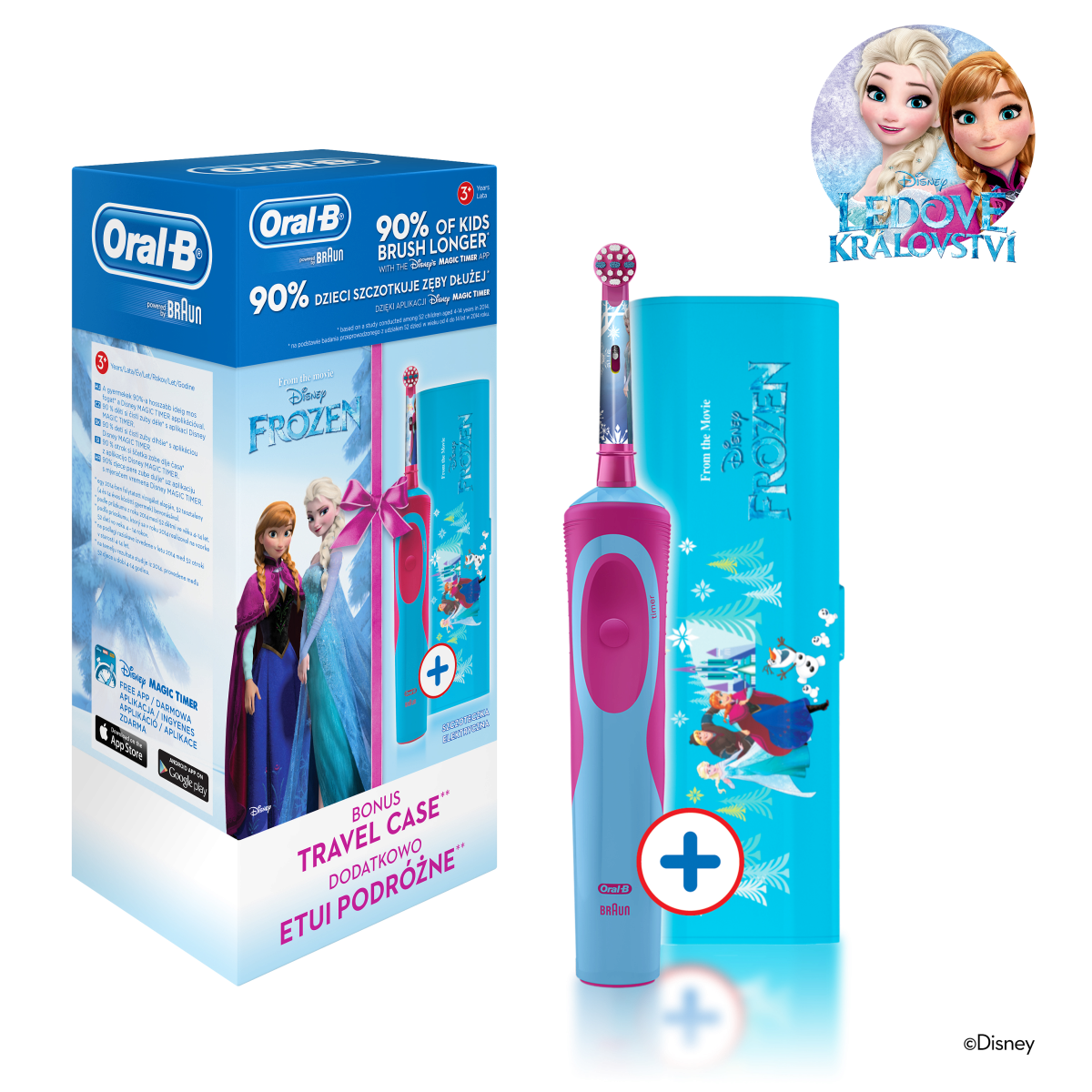 Oral-B Vitality KIDS Frozen elektrická kefka pre deti + cestovné púzdro s motívmi Ľadového kráľovstva