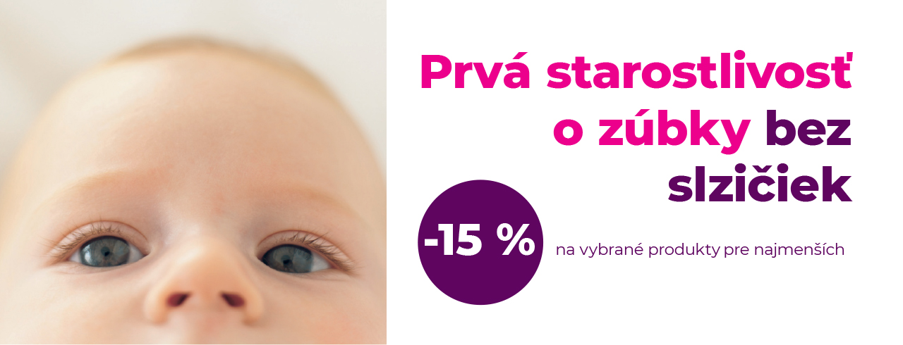 Od ortodontických cumlíkov, cez chladivé hryzátka, až po prvé kefky a pasty – tu nájdete všetko potrebné so zľavou 15 % na vybrané produkty.