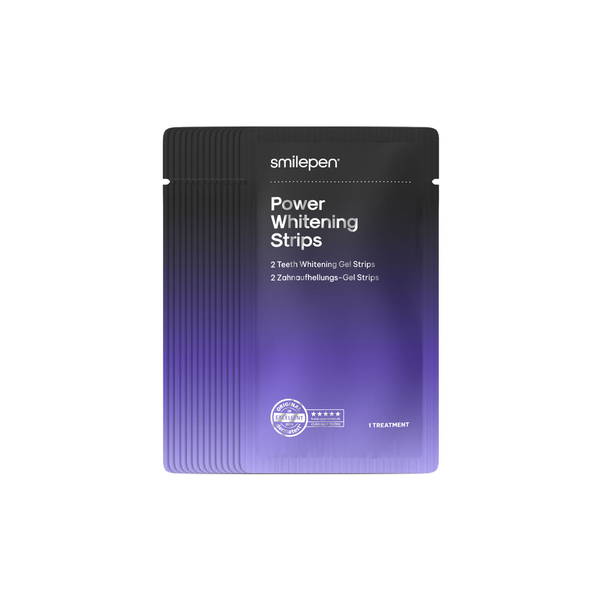 Extra silné bieliace pásiky Power Whitening Strips pre zosvetlenie zubnej skloviny až o 8 odtieňov iba za 7 dní. Bieliace pásiky Smilepen Power Whitening Strips s inovatívnou bieliacou formulou PAP sú vhodné aj pre citlivé zuby, pretože obsahujú hydroxyapatit pre posilnenie zubnej skloviny, a kyselinu hyalurónovú, ktorá sa stará o ďasná. Vďaka tomu sa po ošetrení eliminuje podráždenie ďasien a zvýšená citlivosť zubov. Prvé výsledky sú viditeľné už po prvom ošetrení! Kompletný popis