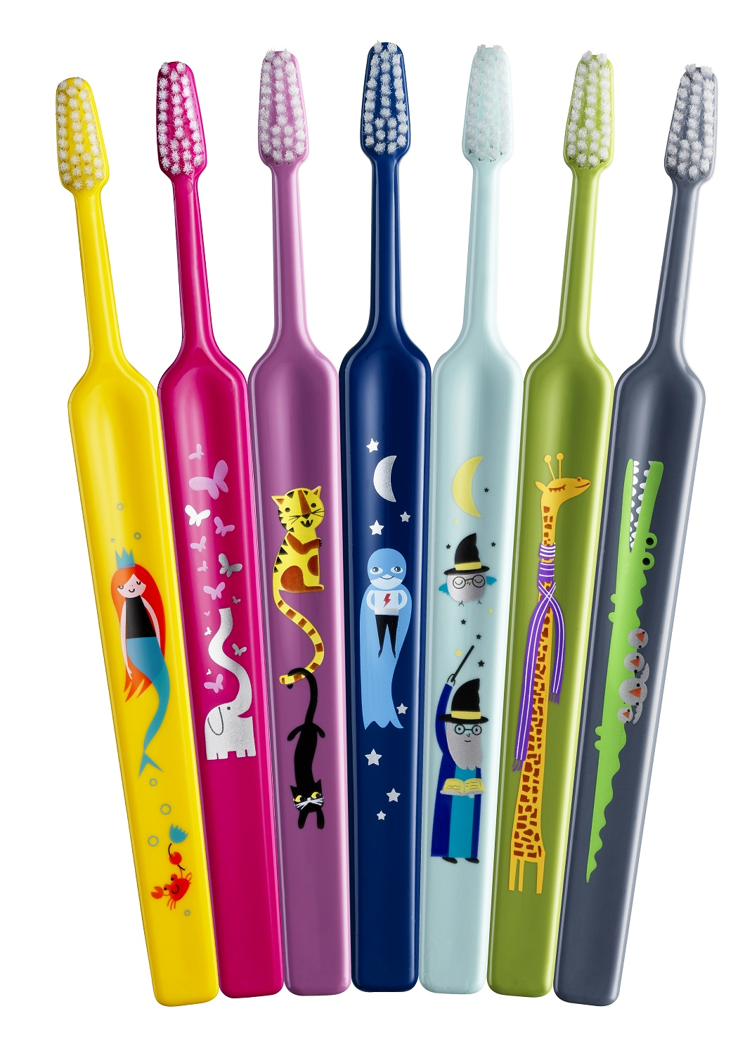 Veselé zubné kefky s motívmi zvieratiek zo Zoo sú určené nielen pre deti. Kefka má malú trojuholníkovú hlavicu, 2 760 velmi mäkkých vlákien, lekármi odporúčané rovné zastrihnutie a ploché držadlo. V ponuke je široká škála farieb a potlačí. Kompletný popis