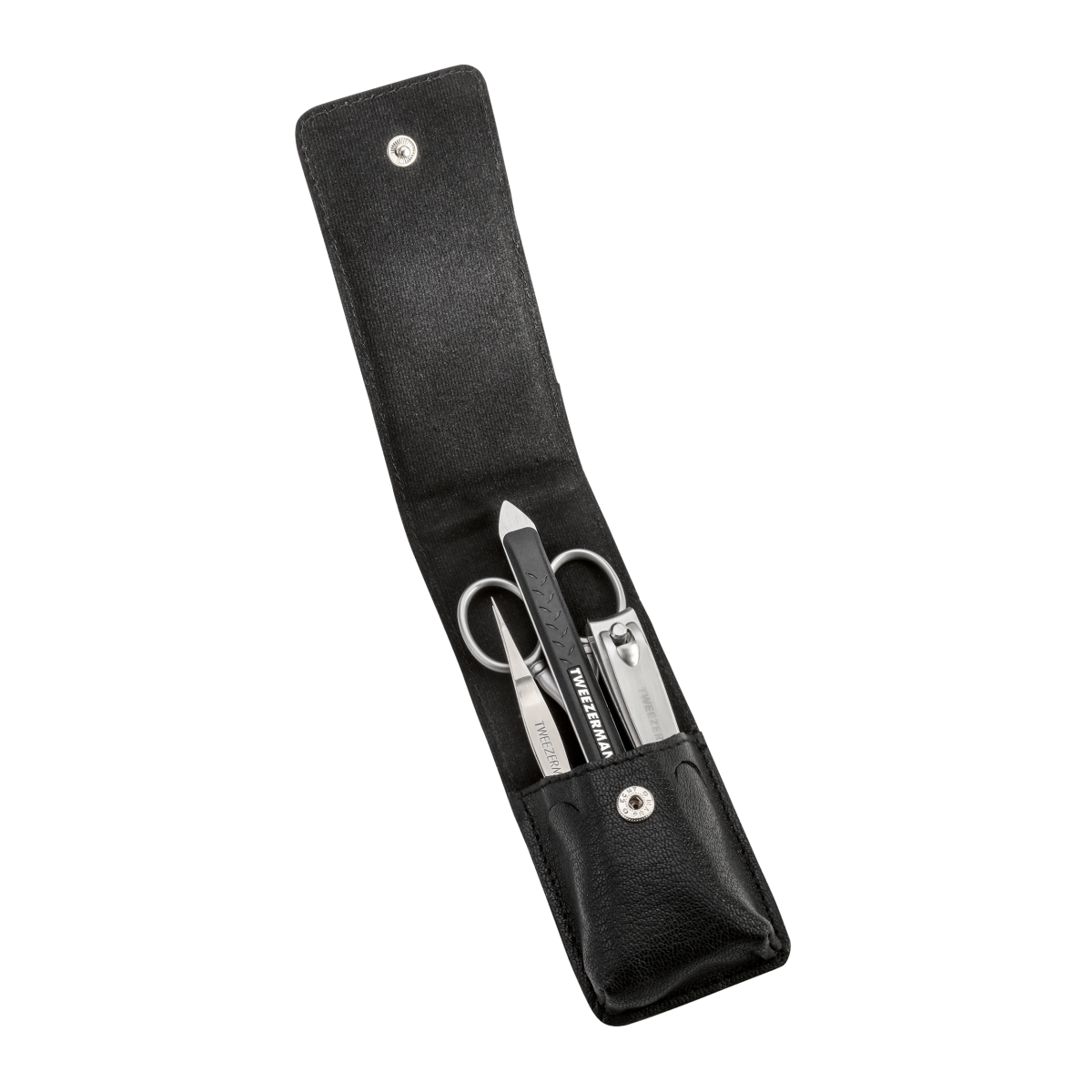 Nová kolekcia Tweezerman GEAR špeciálne vyvinutá pre potreby každého muža. Sada obsahuje špicatú pinzetu Point, nožnice na zastrihávanie chĺpkov s okrúhlou špičkou, klieštiky na nechty na rukách a multi nástroj 3 v 1. To všetko je zabalené v koženom púzdre.